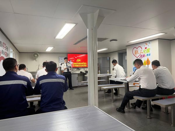 活动中,党员们共同观看海口中心及船舶建造宣传片,并由船员代表详细介绍了船舶设备运行、科考任务开展及日常管理工作等情况。学习环节,海口中心船舶大队党支部书记领学党的二十届四中全会精神,海口海事局港区海事处党支部书记领学习近平总书记关于海南自由贸易港建设的重要讲话精神,筑牢服务国家战略的思想根基。随后,双方围绕“科考船安全管理”这一核心议题,分享安全管理经验与监管实践案例,就强化应急联动、优化安全保障机制等问题深入交流,达成“党建引领、业务融合、安全共护”的工作共识。