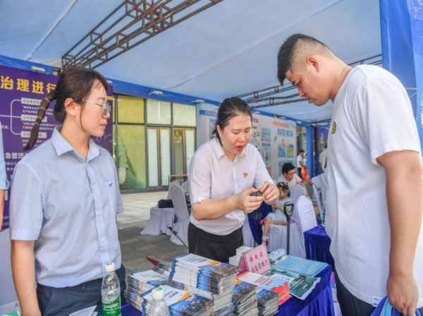 海口中心作为受邀单位,结合“垂管”地勘单位安全风险类型和安全生产三年治本攻坚行动要求,在主场活动展区展示了安全设施建设和技术创新方面成果,并通过实物展示、现场咨询、实操教学、互动体验、有奖问答等多种方式,让市民沉浸式学习安全知识,强化安全文化意识,提高应急逃生能力。