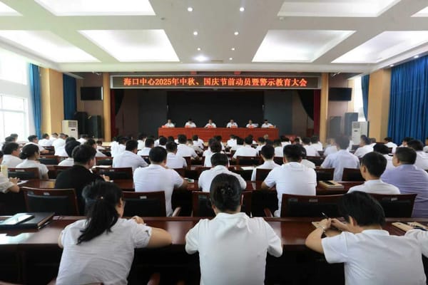 中秋、国庆“双节”临近,为贯彻落实上级节日工作部署、压紧压实各项责任,9月29日,海口海洋地质调查中心(以下简称“海口中心”)召开2025年中秋、国庆节前动员暨警示教育大会。海口中心领导班子成员、全体在位职工参会。