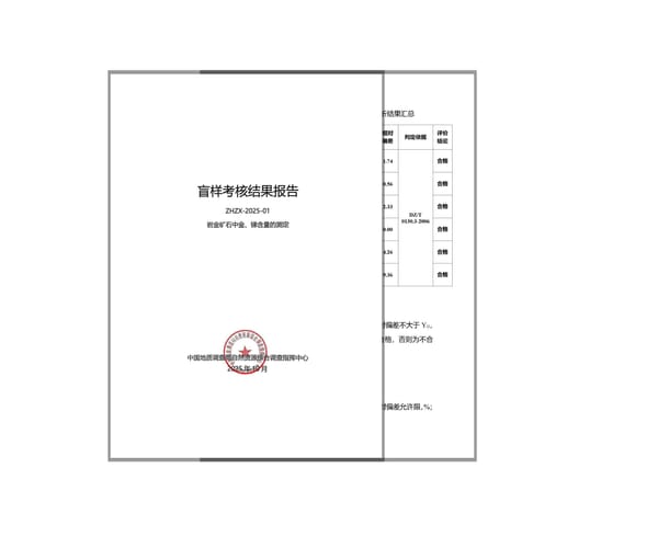 盲样考核与能力验证同为检验实验室技术能力与数据准确性的权威方式。本次考核聚焦于岩金矿石中具有重要经济价值的金、锑元素,其顺利通过,充分体现了实验室在战略性矿产实验测试领域的技术实力与数据可靠性。