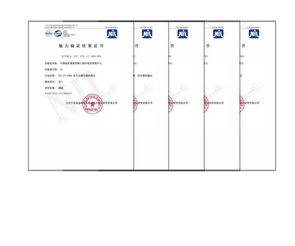 截至目前,海口中心实验室在2025年已累计通过9项能力验证与盲样考核,检测能力覆盖土壤、沉积物、海水、地表水等多种复杂环境介质,涉及13项关键参数。这充分展现了实验室全面、精准的分析测试实力,进一步提升了其在行业内的公信力与影响力,也为海口中心新一轮找矿突破战略行动注入了重要力量。
