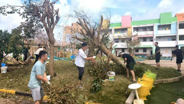 自9月7日以来,海口中心一方面着手恢复办公院区及家属院区工作、生活秩序,另一方面抽调精干力量,以党员为骨干、以科室为单位组织多支抢险救灾队伍,就近响应需求,第一时间投入抢险救灾工作,争当重建工作中的“排头兵”。