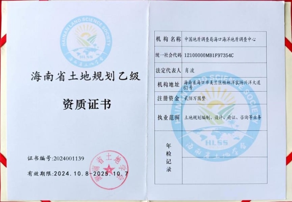 近日,中国地质调查局海口海洋地质调查中心(以下简称“海口中心”)顺利通过海南省土地学会关于土地规划乙级资质的认定审批,获得土地规划编制、设计、论证、咨询等业务的乙级资质。