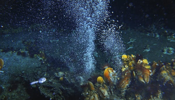 当天然气水合物大量分解,或是地层沉积速度过快,地层中的流体排出速度跟不上,逐渐形成高压流体,在压力超过上方地层枷锁时,裹挟着气体的泥浆便会顺着断层上升、喷溢,在海床堆砌起咕嘟冒泡的“巧克力喷泉”——海底泥火山。横向地质构造挤压催生的泥底辟运动,出露海底后也会塑造这些海底奇观。看似有趣的海底“巧克力喷泉”可是海底沉积物的重要排气口,每年释放的巨量甲烷气体可搅动全球气候。大陆边缘的泥火山更是海底失稳的诱发因素之一,可对海底电缆、管道等造成破坏。泥火山亦是深海的双面信使,在泥火山发育区域,海水中形成的羽状气泡流是天然气水合物富集的天然路标;泥火山也是深海生命的“绿洲”,喷发物中的甲烷能为周围的化能自养型微生物提供足够的能量,滋养出独特的生态群落。
