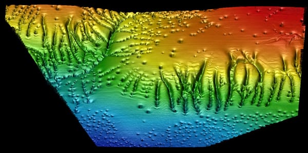海底流体或气体向海底缓慢渗漏或者快速喷发,不断剥蚀着松散沉积物,雕琢出大小不一、形态各异的凹陷地貌,这便是海底麻坑。这些静默的海底凹坑,宛若气泡狂欢后散落的印记,以独特的地质语言诉说着深海的隐秘故事。海底麻坑的形成多归因于天然气水合物分解、浅层气逃逸或流体超压等地质过程,其分布跨越广袤的海域,从不足10m的浅海区域到深达5000m的深海环境,皆能觅得其踪迹。复杂多变的海洋环境与流体活动,赋予了麻坑丰富的形态,直径可从5m到数千米不等,形态既有规整的圆形、椭圆形,亦可见拉长形、新月形等不规则轮廓。成片分布的麻坑就像海底世界的“派对后遗症”,通过麻坑逸散的甲烷衍生的碳酸盐岩致使海底局部岩化,与麻坑凹陷地形共同对海底输油管道和海底电缆的铺设带来重重阻碍。然而换个视角,麻坑也是深海馈赠的寻宝图,其边缘持续的气体渗漏,是探寻天然气水合物和浅层气藏的重要地质标志;流体或气体渗漏易引发海底失稳,而麻坑作为海底流体或气体活动的典型地貌标志,直接指示海床不稳,为海底滑坡的稳定性监测提供重要信息。