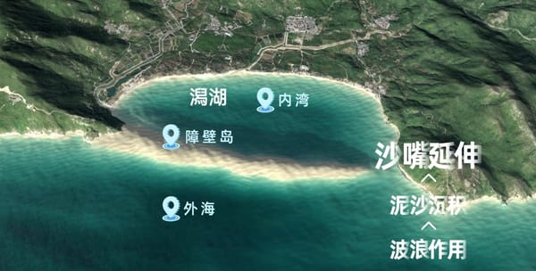 潟湖的形成与演化是一个动态的地质过程。它始于沿岸沙坝的发育——海浪和沿岸流携带泥沙在近岸处堆积,逐渐露出海面形成障壁岛。随之,被隔离的水体开始形成独立的生态系统。