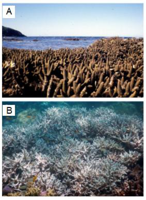 (A)健康和(B)白化的珊瑚。(Hughes,2017)